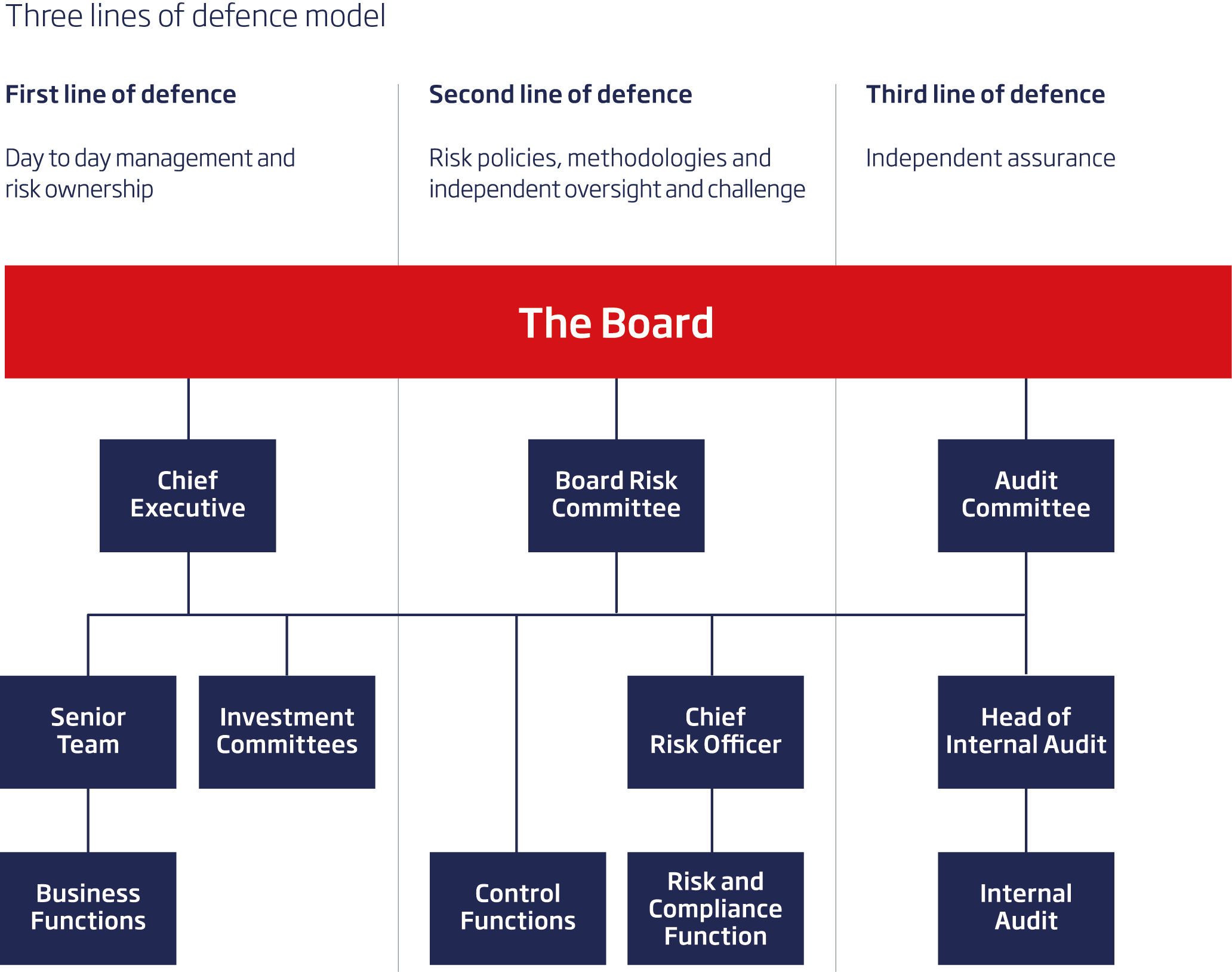 The Board has overall accountability and responsibility for the management of risk within the British Business Bank. Our Risk Management Framework has been designed to align to the size, scale and complexity of the British Business Bank and has been benchmarked against other financial services institutions. The British Business Bank is not an FCA/PRA regulated entity, although one of its subsidiaries representing less than 1% of the portfolio, Capital for Enterprise Fund Management, is regulated by the FCA for controlling but not holding client money. The rest of the British Business Bank is not subject to regulatory supervision and the British Business Bank does not hold regulatory capital. The Bank is however subject to other applicable laws and regulations and aspires to meet standards of good practice. We have policies and procedures in place to ensure compliance with applicable laws and regulations, including Anti Money Laundering, Data Protection and Freedom of Information, and aspire to follow best practice where appropriate and applicable.